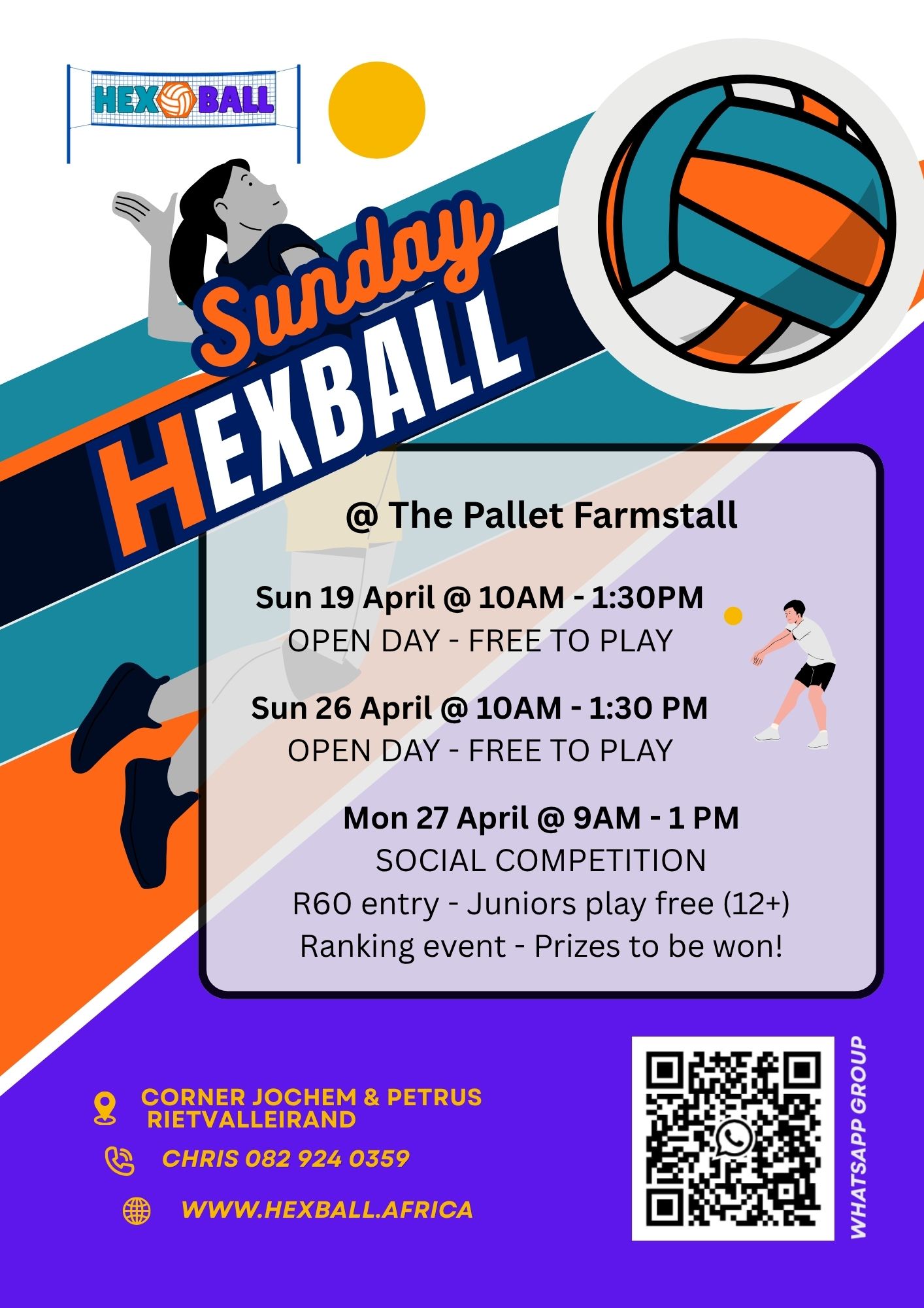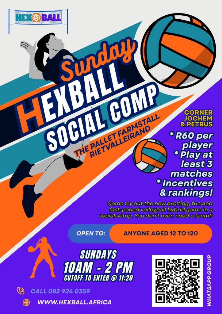 The 2-a-side volleyball hybrid game suited for all ages, genders, shapes and sizes. Hexball is played on a hexagonal court with an adjustable net height. Smaller than a regular size beach volleyball court, the game is designed to be more accessible for players, more viable as a commercial opportunity, faster as a spectacle and more viewable as a contest.